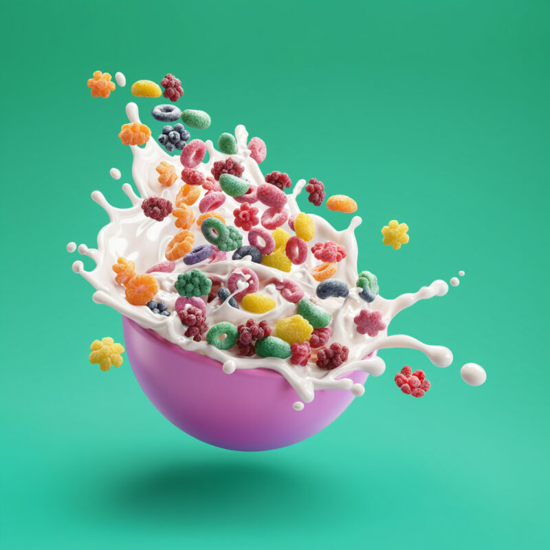 Yummy Cereals is a CGI packaging project created to showcase the product through playful food styling, clean product-focused composition, and polished visual execution. The project highlights both the cereal packaging and the product itself with refined materials, appetizing details, and a bold advertising look.